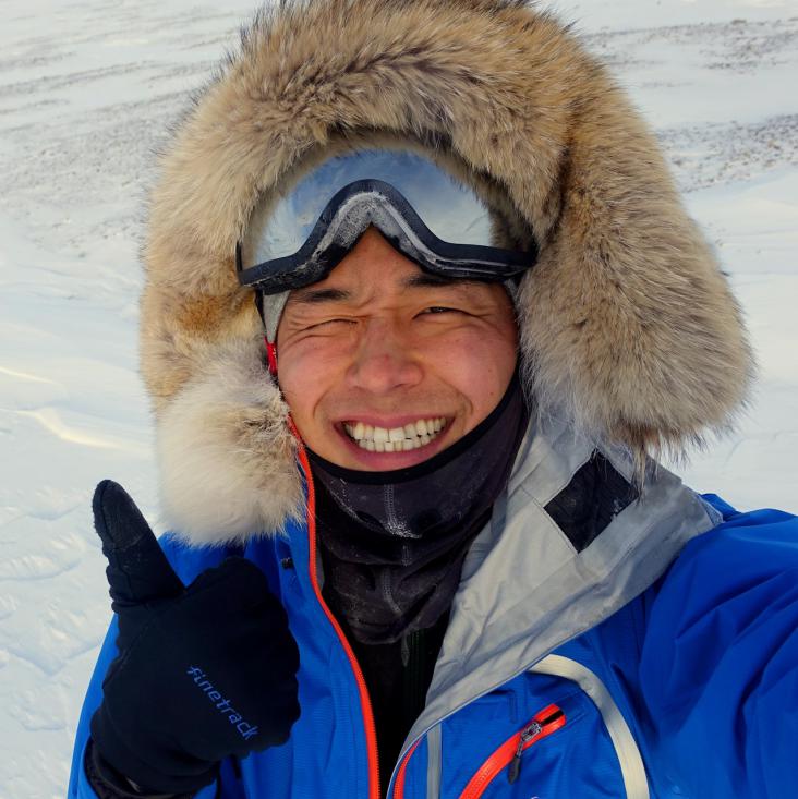 Selfie of Masatatsu Abe during his 2018 ski expedition.