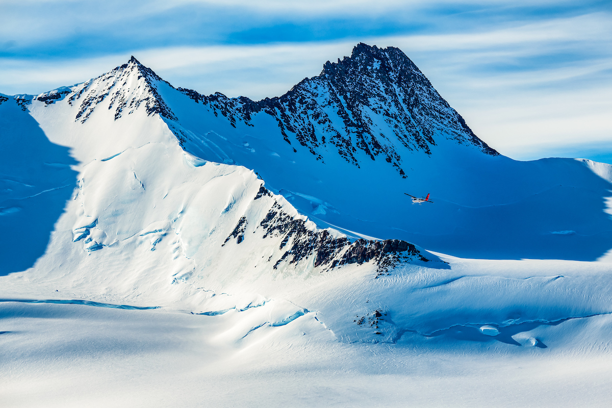 A Twin Otter comes in to land at Three Glaciers Retreat