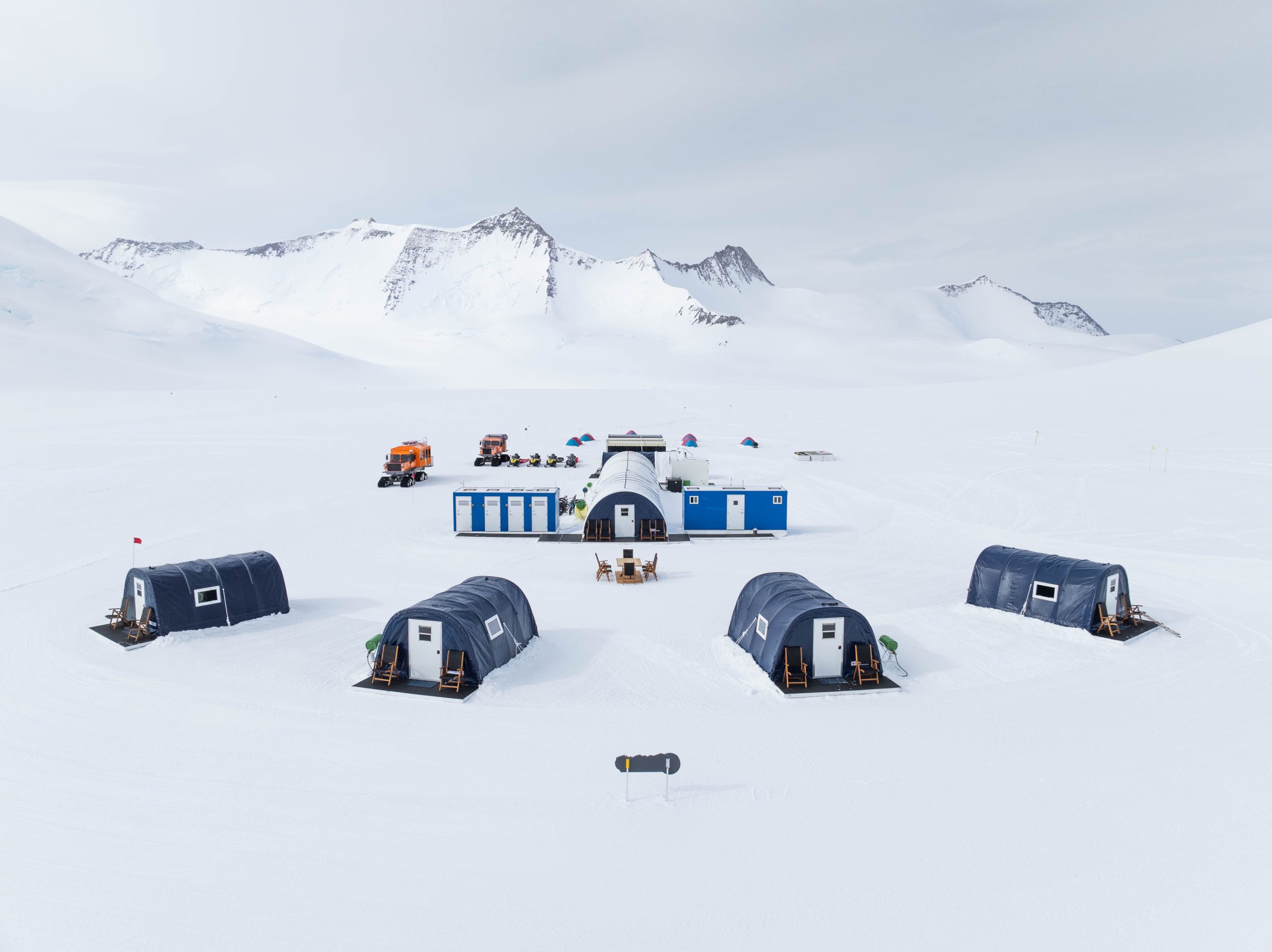 Aerial shots of Three Glaciers Retreat camp.