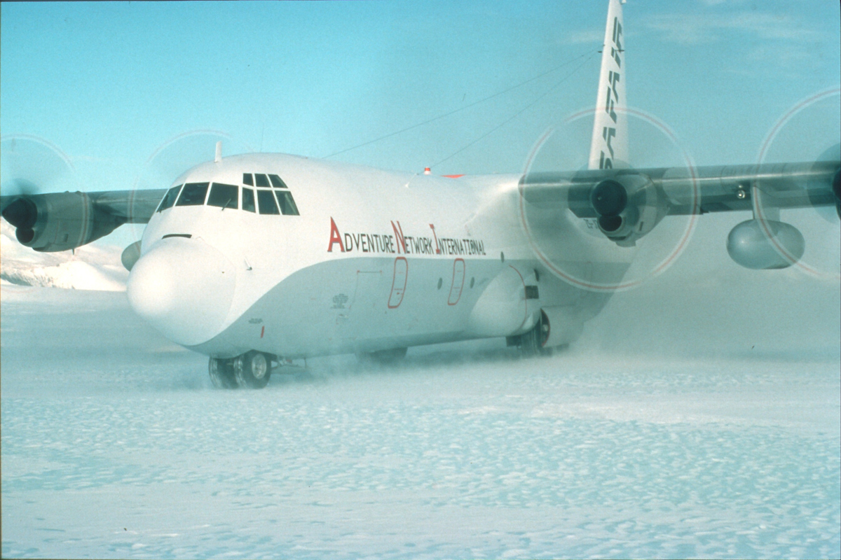 ANI’s Hercules L-382 aircraft taxis at Patriot Hills blue-ice runway