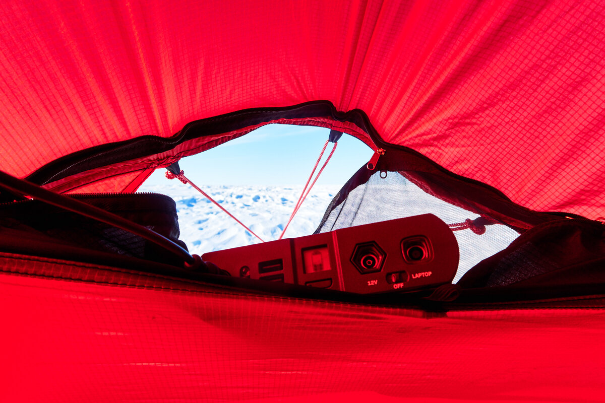 Ski Last Degree and Ski South Pole expeditions often use single-walled, tunnel shaped, Hilleberg tents that are lightweight and quick to set up. These are important factors when you are hauling your equipment more than 600 miles (1000km) and have to set up and take down your tent each day, often in extreme conditions. The simple hoop frame allows us to partially disassemble the tent and pack it into an expedition sled, greatly speeding up the time required to set up camp each day. The tunnel shape means that the tent must be set up into the prevailing wind, which blows consistently from the Pole toward the coast.