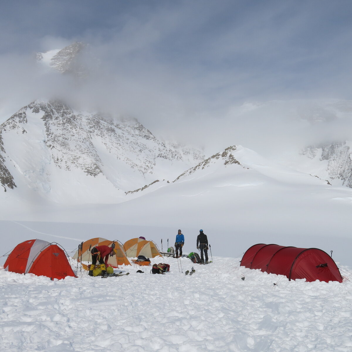 Mount Vinson, Climb Antarctica, Ski Antarctica, and Mount Sidley expeditions utilize sturdy 4-season mountain tents like the Mountain Hardwear Trango 3.1 tents. These free-standing, double-walled tents have a more complex pole configuration, which makes them extremely strong in high winds, regardless of the wind direction.