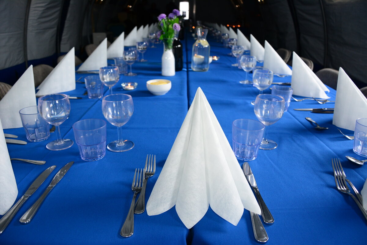 The dining tent is the heart of our camp and serves as a gathering place for all of our guests. You’ll have the opportunity to meet people from all over the world embarking on everything from a Mount Vinson summit attempt to a Ski South Pole expedition. You’ll get to mingle with our staff, who speak 15 different languages, and may have the chance to talk to scientists working on a variety of research projects.