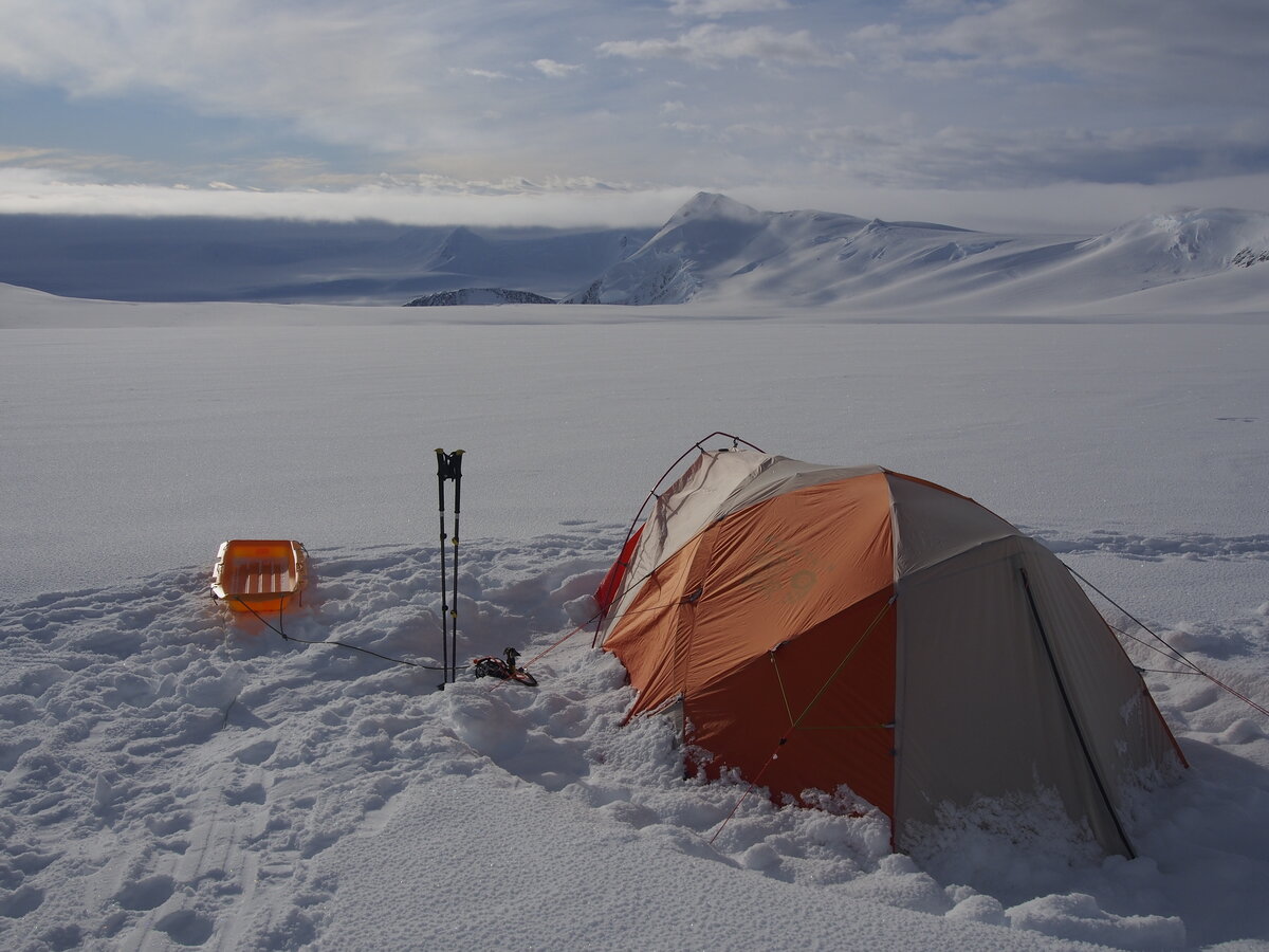 Guests on ALE guided experiences will enjoy our comfortable sturdy 4-season mountain tents situated amongst spectacular scenery. We typically use Mountain Hardwear Trango 3.1 tents. These free-standing, double-walled tents have a more complex pole configuration, which makes them extremely strong in high winds, regardless of the wind direction.