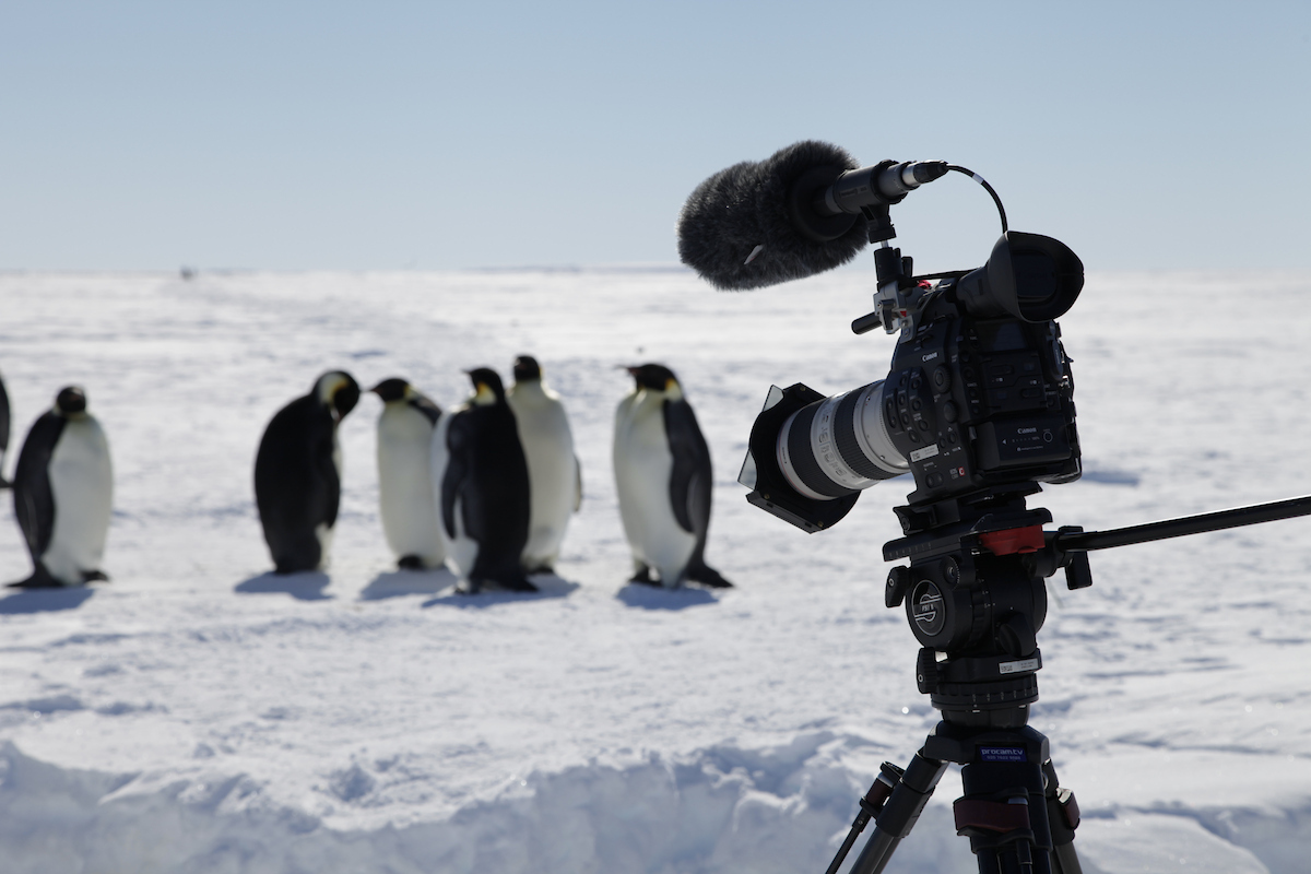 Camera set up to film Emperor penguins, at Gould Bay emperor penguin colony.