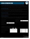 A partially filled medical information form with sections for personal details, emergency contacts, and insurance information on a black background. White and blue text and tables are visible, along with an Antarctic Logistics and Expeditions logo in the top right corner.