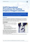 A document titled IAATO Operational Procedures for Visiting Emperor Penguin Colonies in Antarctica, featuring introductory text, a photo of two adult emperor penguins with a chick, and sections on introduction and background.