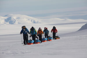 Expedition team approaches the top of the Axel Heiberg Glacier
