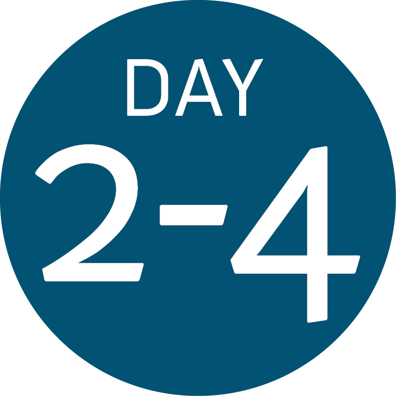 A blue circle with the text DAY 2-4 in white, marking days two to four of your Antarctic Logistics and Expeditions journey.