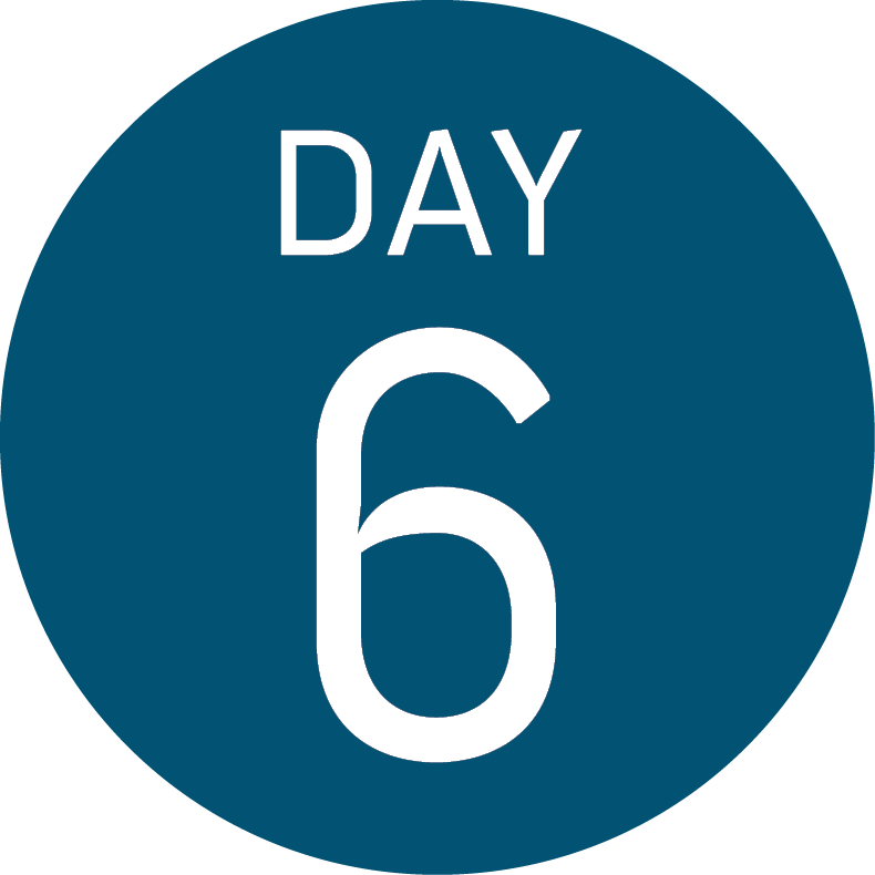 A blue circle with the words DAY 6 in white, bold letters and numbers in the center—perfect for tracking your Antarctic Logistics and Expeditions journey to Antarctica or the South Pole.
