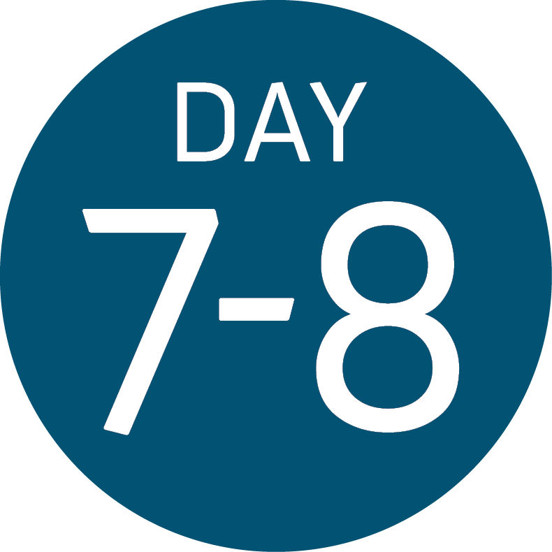 A blue circle with the words DAY 7-8 in white text, marking days seven to eight of your Antarctica journey—an update by Antarctic Logistics and Expeditions as you approach the South Pole.