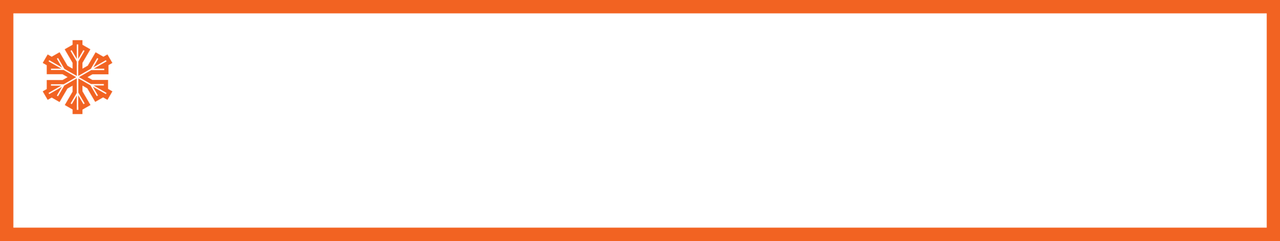 A white rectangular banner with a thick orange border, an orange snowflake icon in the top left corner, and a blank center for text—perfect for highlighting Antarctic Logistics and Expeditions or South Pole information.