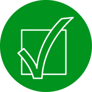 A green circle with a white outlined square and a bold white check mark overlapping the square, symbolizing approval or completion—perfect for representing successful Antarctic Logistics and Expeditions in the South Pole.