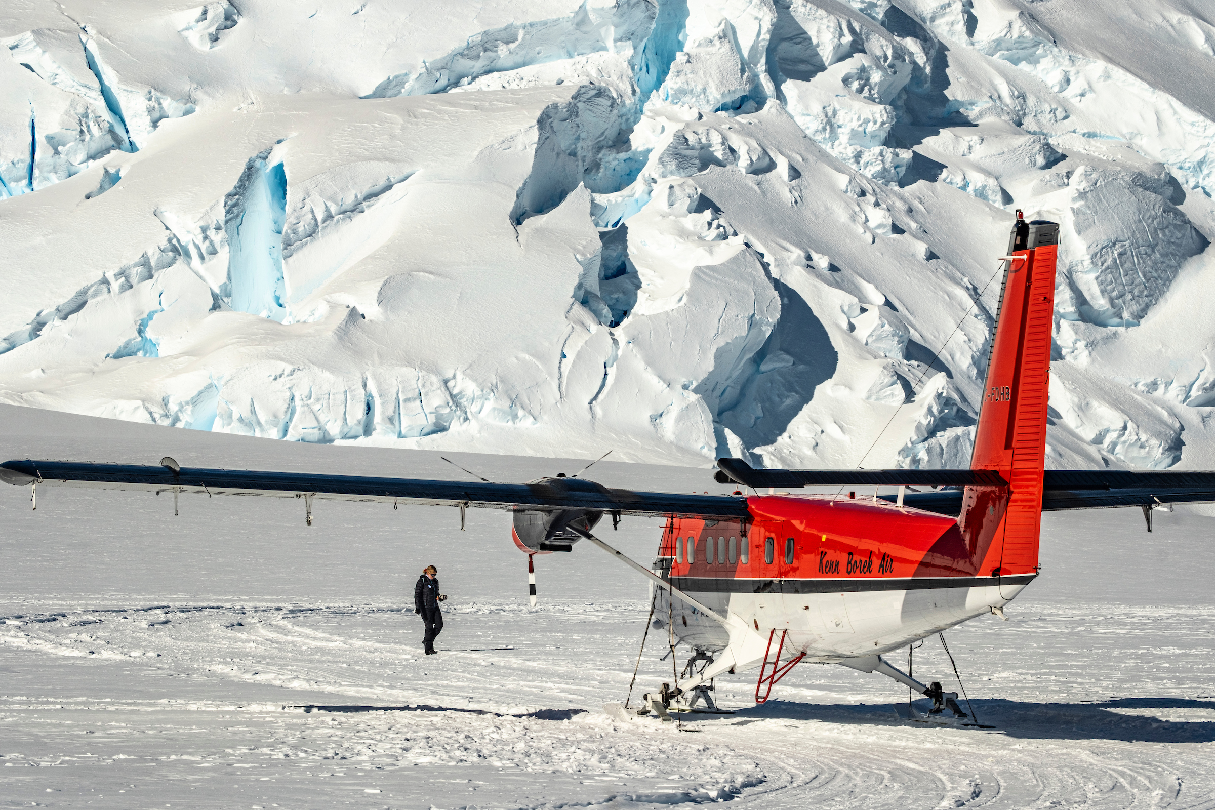 Kimberley McDowell out for a walk, Day visit to base camp, ALE / Ken Borek Twin Otter flight Union Glacier to Vinson base camp,